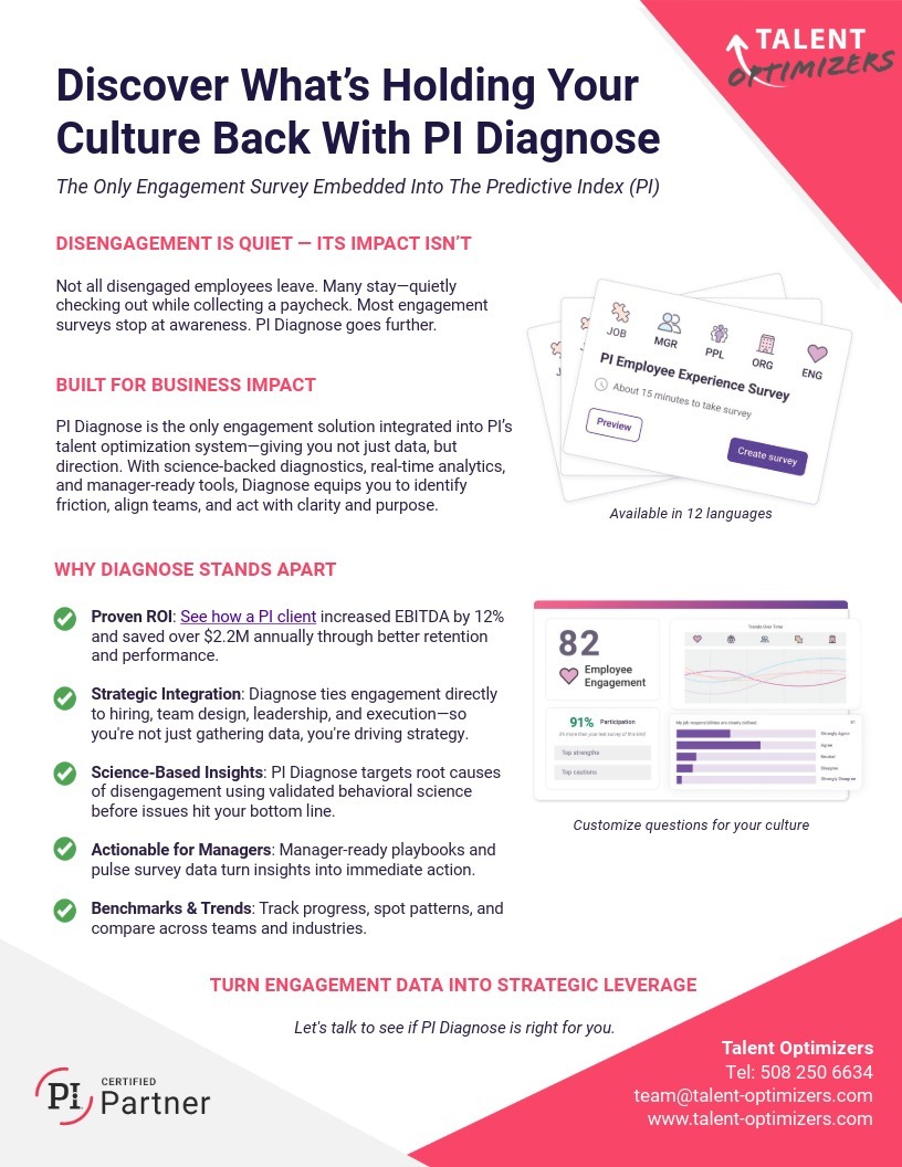 Science-Based Insights: PI Diagnose targets root causes of disengagement using validated behavioral science before issues hit your bottom line.